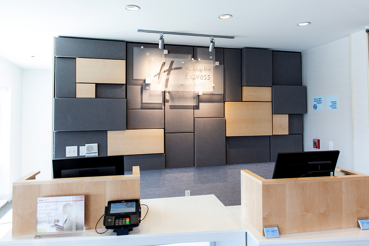 For this project we started with the reception desk wall that is elegantly designed with a combination of upholstered and wood panels, creating a welcoming and sophisticated ambiance for guests. Next, we built the market shelving and screen walls. These were carefully crafted to enhance the aesthetics and functionality of the space, providing a seamless shopping experience for guests. The custom buffet cabinetry features rich walnut heights laminate, adding a touch of luxury and style to the dining area, elevating the overall dining experience. Their business center is equipped with a tiered desk and screen wall, providing a productive and professional environment for guests to work and conduct meetings. The TV feature wall is creatively designed with inset maple boxes, adding a modern and artistic touch to the entertainment area, ensuring an enjoyable experience for visitors.